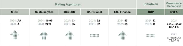 ESG ratings and benchmarks can facilitate access to the capital market for companies that operate sustainably. They enable investors to evaluate and compare the sustainability performance of companies. Our company is rated by various leading ESG rating agencies. We also participate in ESG initiatives such as the Carbon Disclosure Project.