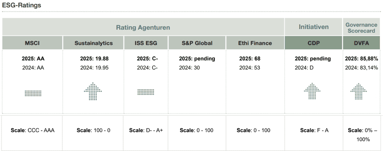 ESG ratings and benchmarks can facilitate access to the capital market for companies that operate sustainably. They enable investors to evaluate and compare the sustainability performance of companies. Our company is rated by various leading ESG rating agencies. We also participate in ESG initiatives such as the Carbon Disclosure Project.