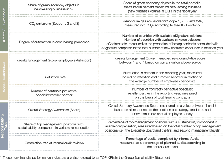 In addition to the financial performance indicators (key performance indicators – KPIs) described in Chapter 1.3.1, the enterprise value of the grenke Group is also influenced by non-financial performance indicators.
