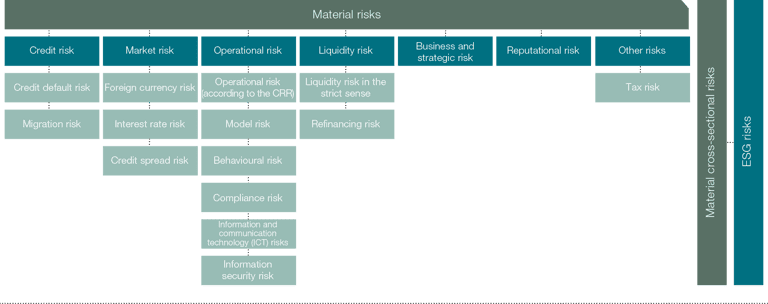The key question in this context is which risks could materially affect the capital, earnings or liquidity position of the grenke Group. Particular emphasis is also placed on the systematic identification and assessment of the impacts of ESG risks.