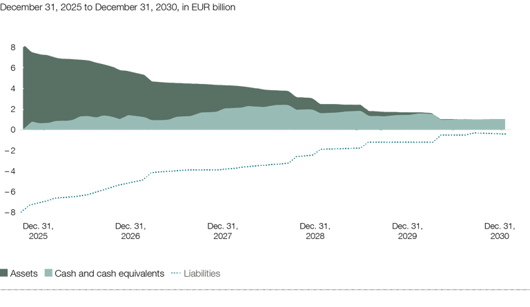 The focus of the economic perspective is on the liquidity gap analysis and the defined stress scenarios. The specified minimum survival horizon was consistently maintained throughout the 2025 reporting period.